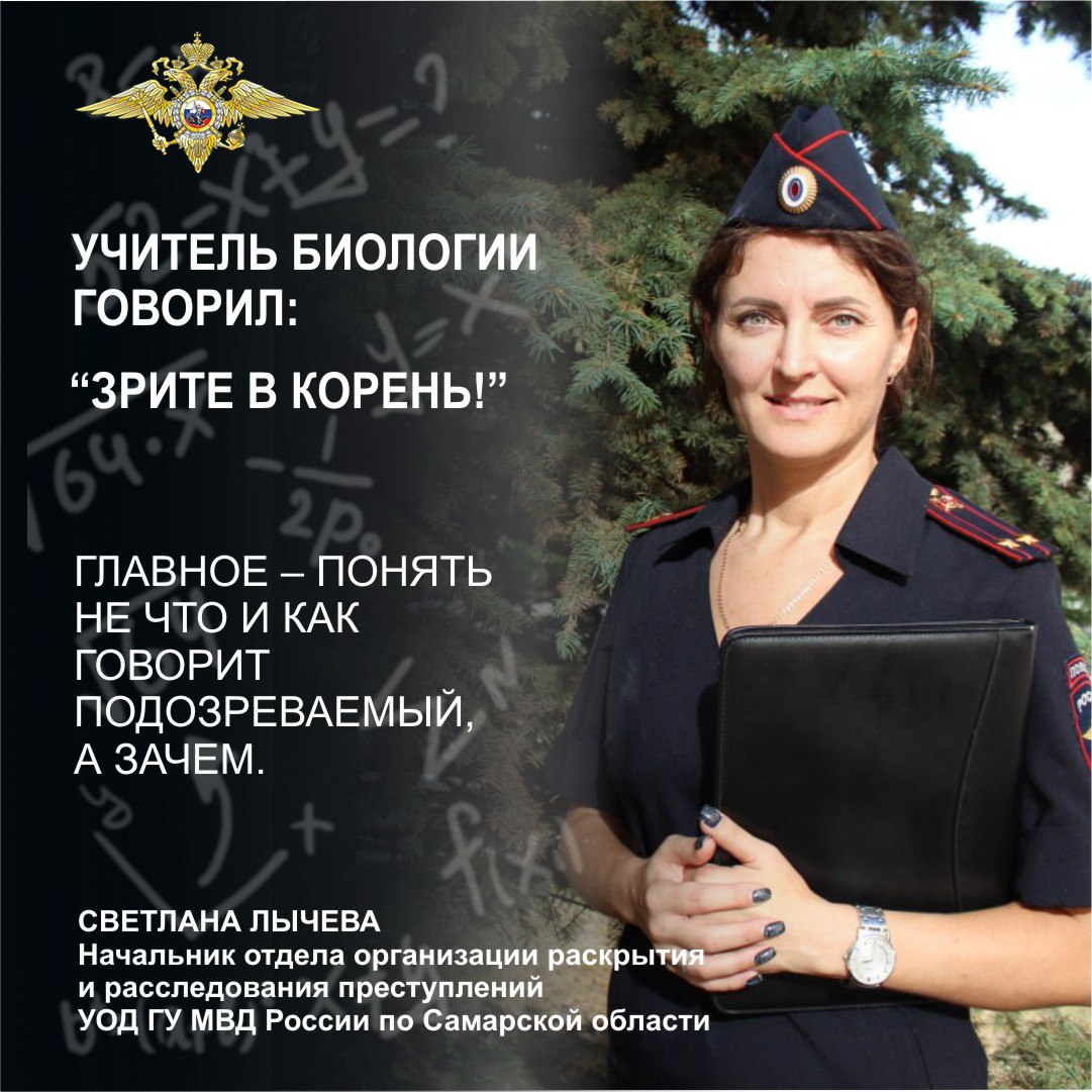 Светлана Лычева – начальник отдела организации раскрытия и расследования преступлений УОД ГУ МВД России по Самарской области, вспоминает уроки биологии и фразу своего учителя: «Зрите в корень».