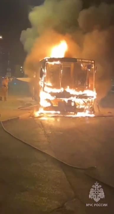Сообщение о возгорании поступило сегодня утром. Автобус следовал на маршрут. На момент возгорания внутри были водитель и кондуктор, они эвакуировались. Пожарные МЧС России оперативно справились с возгоранием.
