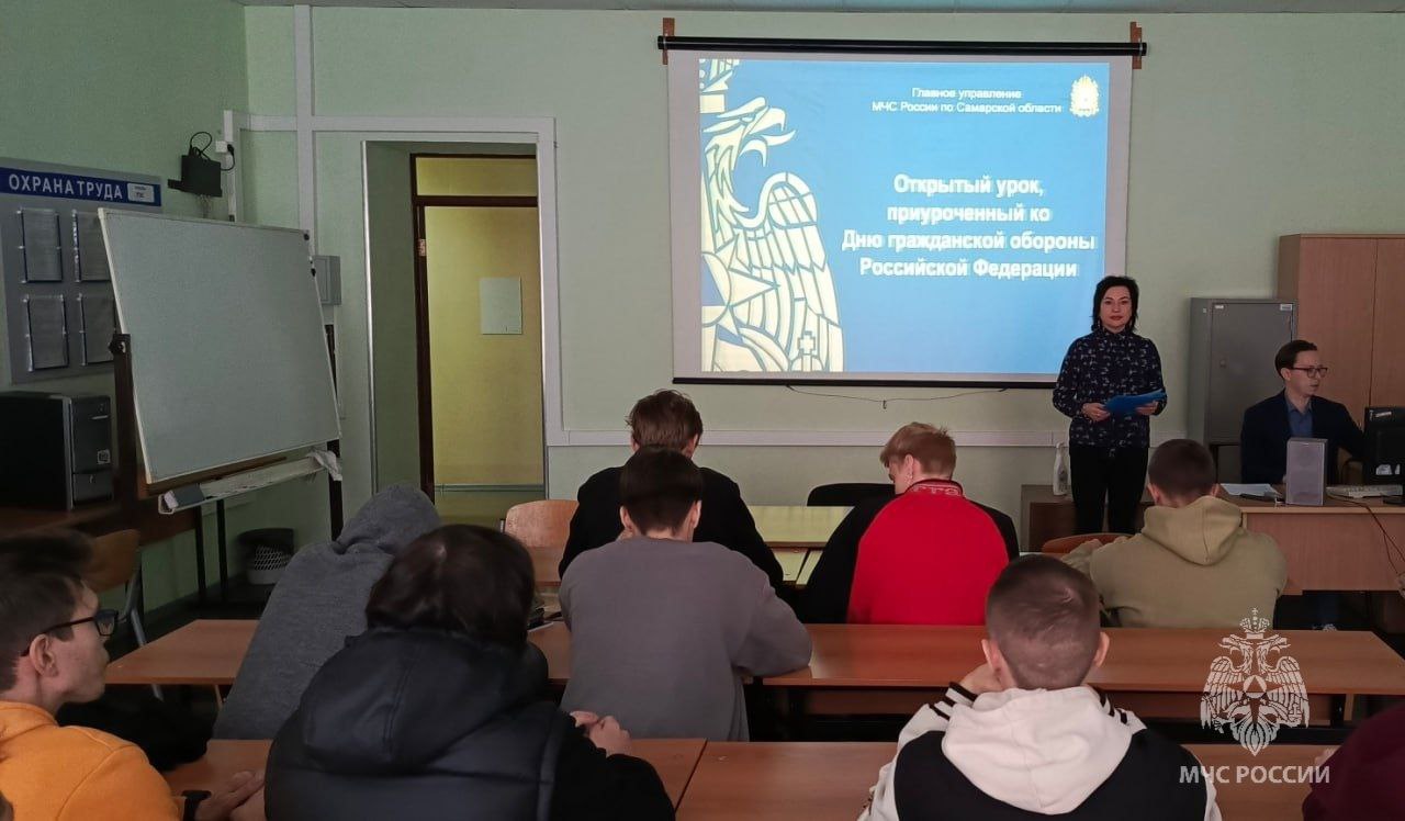В Самаре специалисты МЧС России провели урок безопасности. Обсуждались оповещение населения, действия при сигнале ЧС и правила поведения у воды. 47 студентов узнали о типах оповещения, значении сирен, необходимости сохранять спокойствие и следовать рекомендациям экстренных служб. Особое внимание уделили правилам поведения у водоемов осенью.