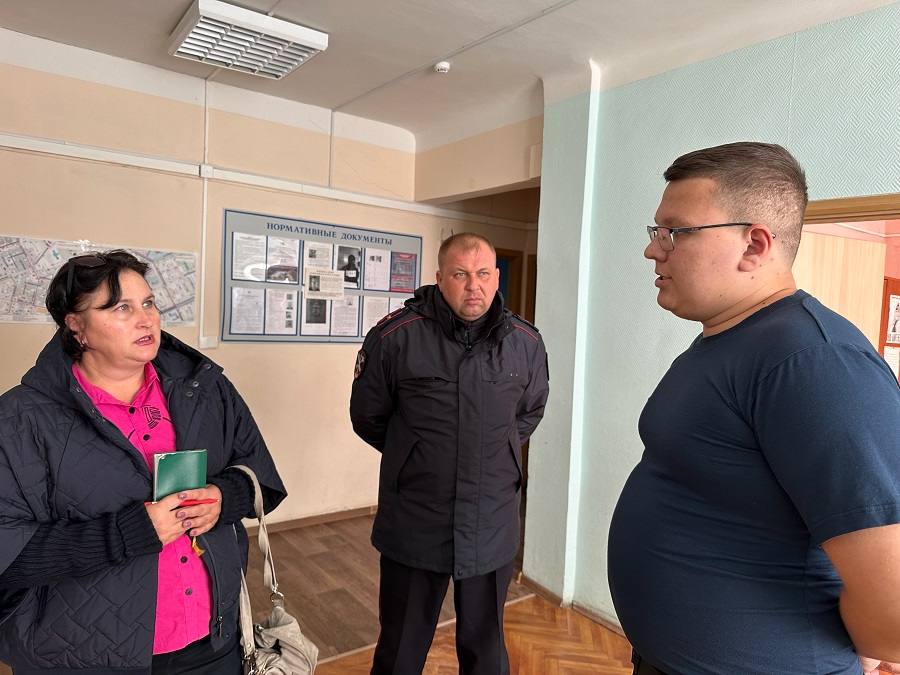 В начале встречи общественники встретились с временно исполняющим обязанности начальника Отдела подполковником полиции Евгением Газизулиным и начальником отдела тылового обеспечения майором внутренней службы Юрием Шишовым и обсудили актуальные вопросы, касающиеся деятельности органов внутренних дел.