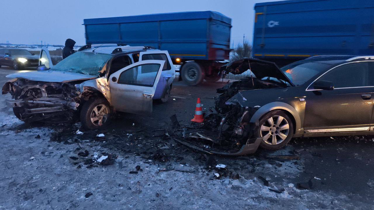Попредварительным данным 26.12.2025 в 16.30 в Нефтегорском районе Самарской области на 89 км + 700 автодороги Самара-Оренбург произошло лобовое столкновение автомашин Renault Duster и Audi A6 .