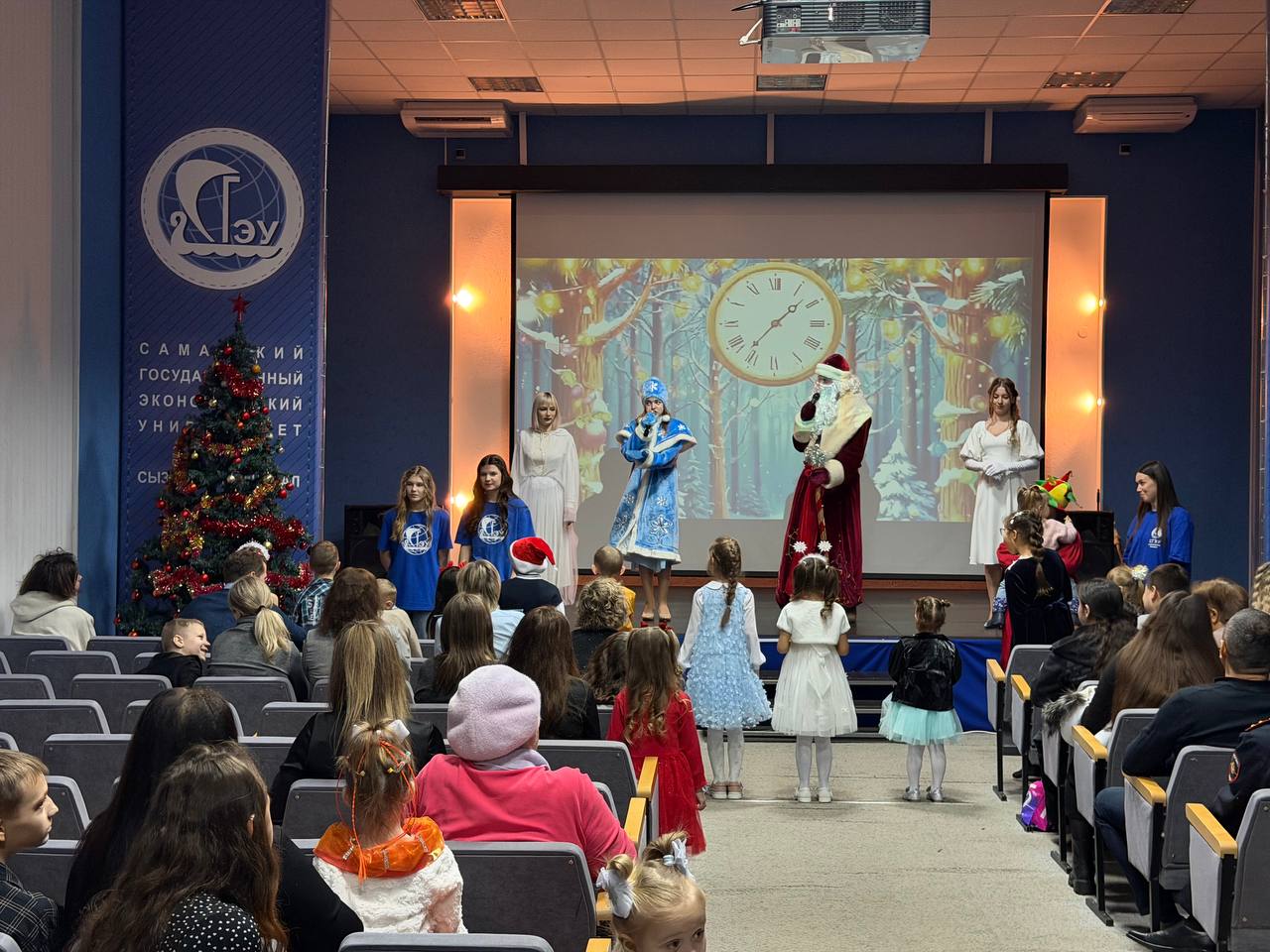 В преддверии Нового года сотрудники Сызранского ЛО МВД России на транспорте получили прекрасную возможность провести праздничный день со своими семьями. Они вместе с детьми побывали на сказочном представлении, организованном волонтерами Сызранского филиала СГЭУ.