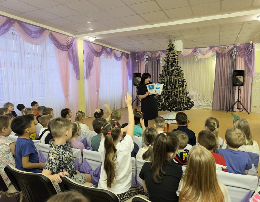 В преддверии новогодних праздников, в Красноярском районе Самарской области сотрудники Госавтоинспекции, в целях снижения риска возникновения дорожно-транспортных происшествий с участием несовершеннолетних в зимний период, провели профилактическую беседу с воспитанниками детского сада.