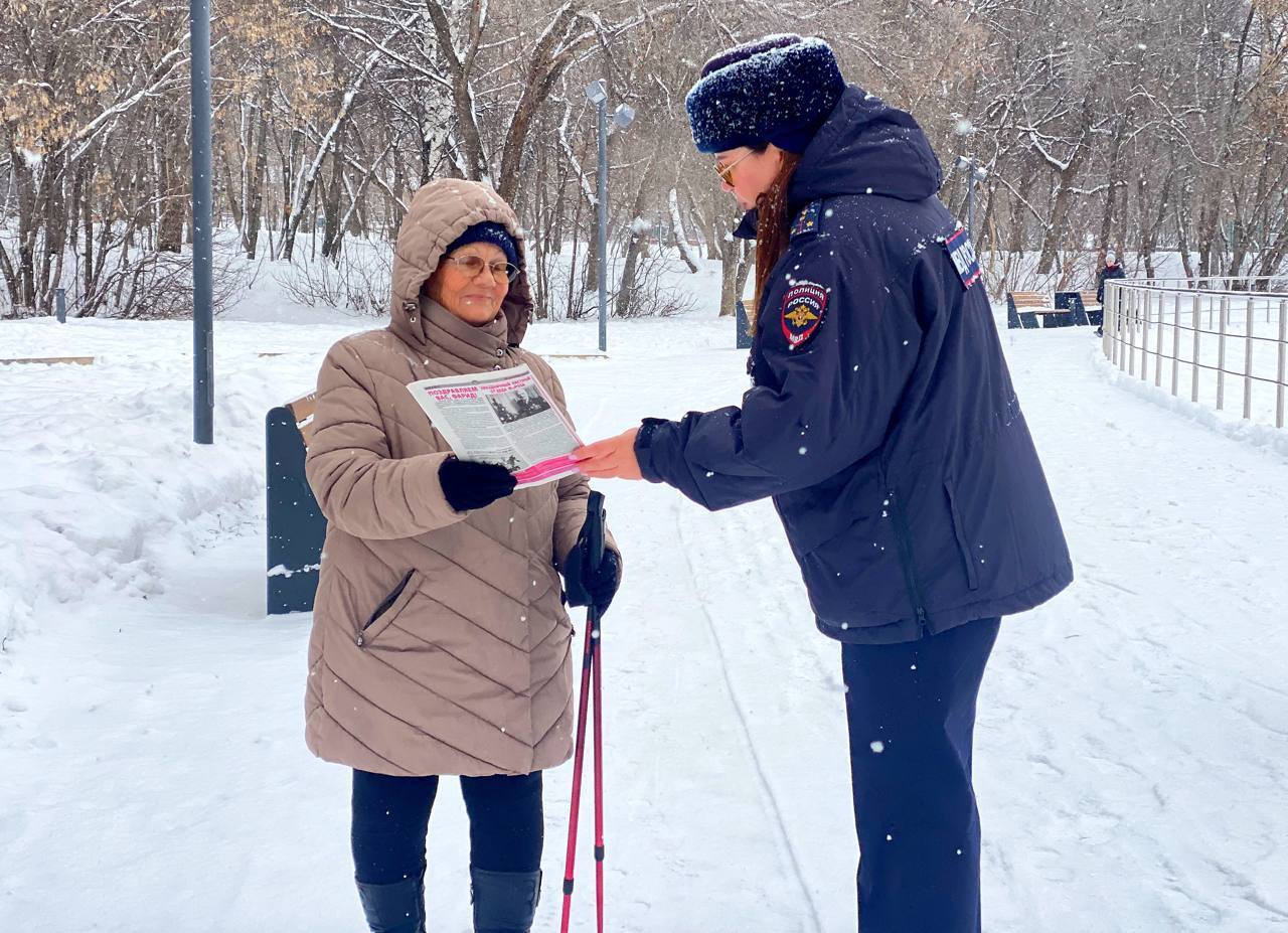 Старшему поколению полицейские вручают праздничный новогодний выпуск газеты «Право» — полезное чтение, которое напомнит о правах, обязанностях и важных правилах безопасности в зимний период.