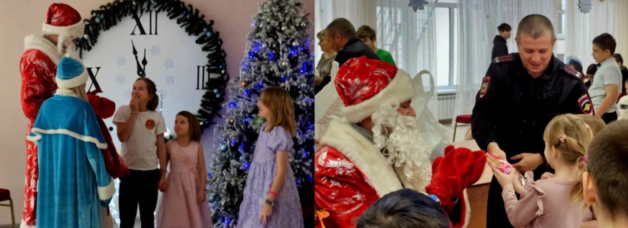 Праздник начался с того, что к зданию Центра подъехал настоящий патрульный автомобиль. Из него с мешком подарков вышли сотрудники полиции в образе «Полицейского Деда Мороза» и Снегурочки. Дети с первых минут погрузились в атмосферу настоящего новогоднего чуда.