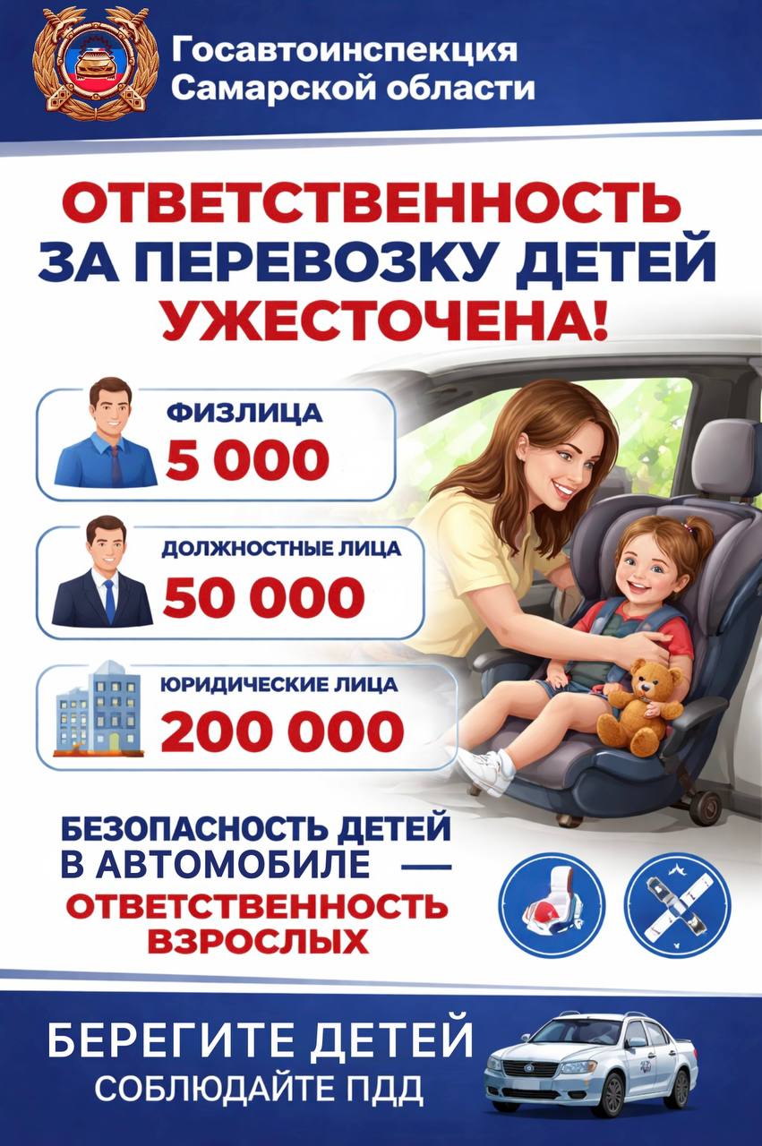 Госавтоинспекция Самарской области напоминает: безопасность детей в автомобиле — это ответственность взрослых. Использование детских удерживающих устройств и ремней безопасности — не формальность и не способ избежать штрафа, а реальный способ сохранить жизнь и здоровье ребёнка.