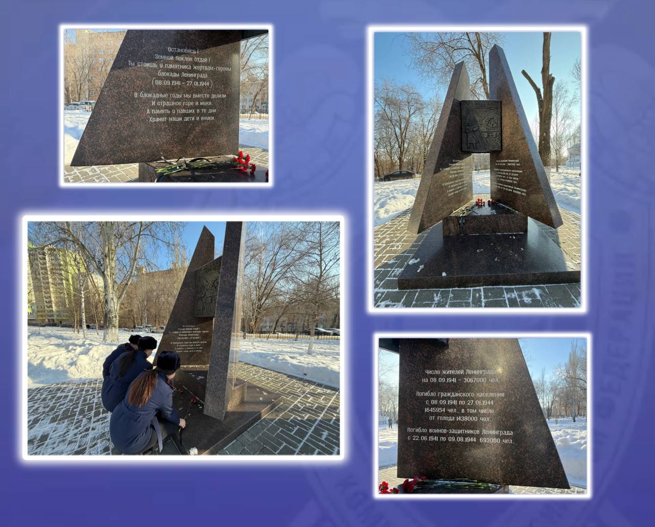 Офицеры ведомства почтили погибших минутой молчания, отдав дань уважения тем, кто ценой своей жизни отстоял Ленинград. Память о подвиге ленинградцев всегда будет храниться в наших сердцах и в памяти наших потомков!