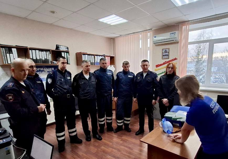 Сегодня для сотрудников Госавтоинспекции Клявлинского района прошло занятие по оказанию первой медицинской помощи. Фельдшер скорой помощи напомнила алгоритм действий в экстренных ситуациях и показала практические приёмы.