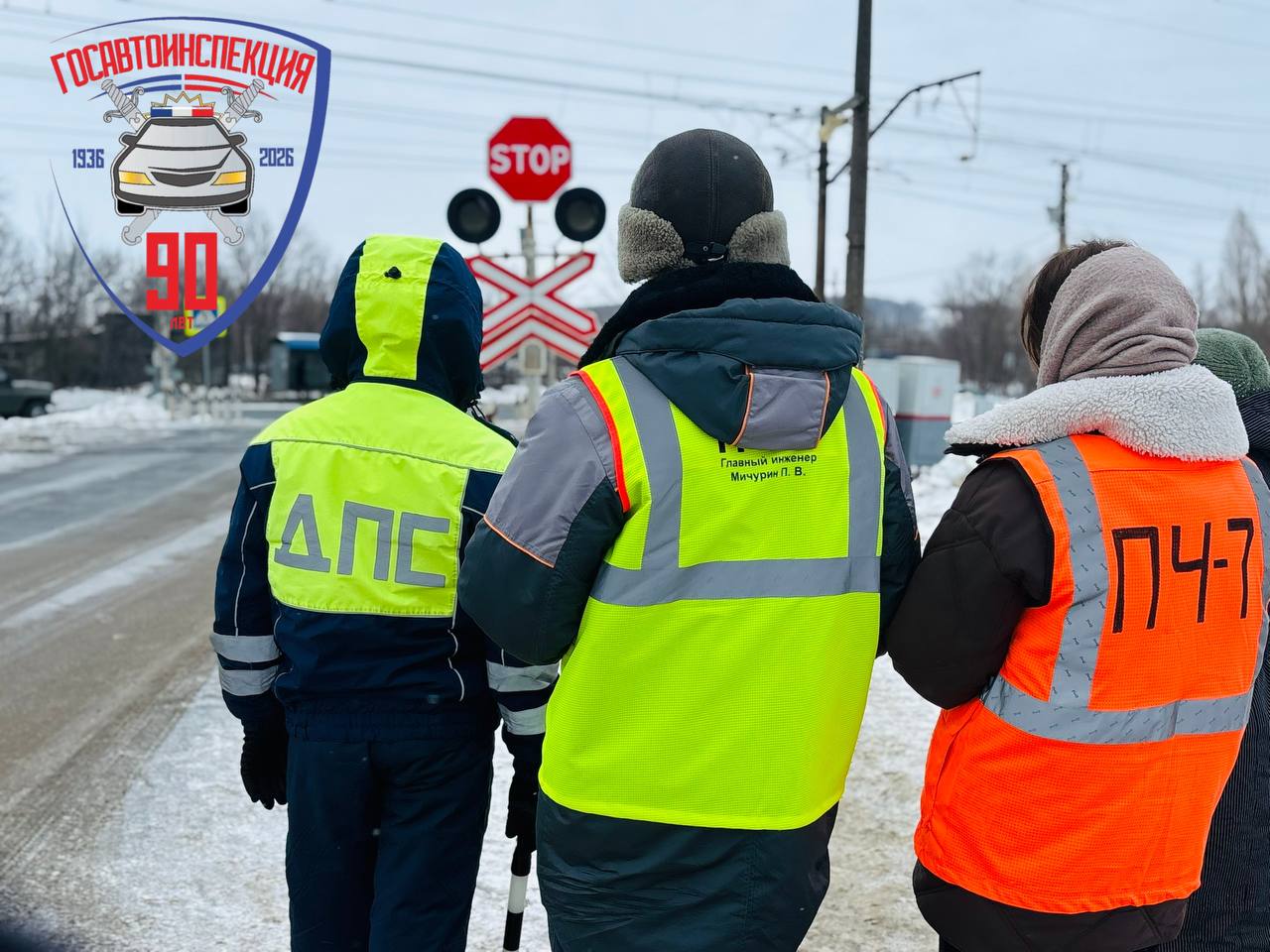 Сотрудники Госавтоинспекции совместно с представителями Ространснадзора и ОАО «РЖД» провели профилактическое мероприятие вблизи железнодорожного переезда.