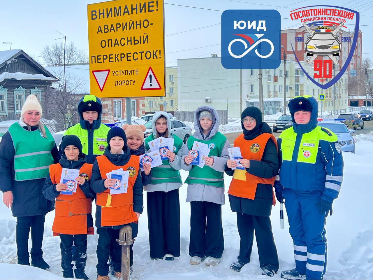 Сотрудники Госавтоинспекции Сызрани совместно с ЮИД и «Родительским патрулём» провели профилактическое мероприятие на одном из аварийно-опасных перекрёстков города.