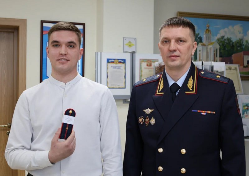 Генерал-майор полиции поздравил присутствующих с важным событием и вручил им погоны.