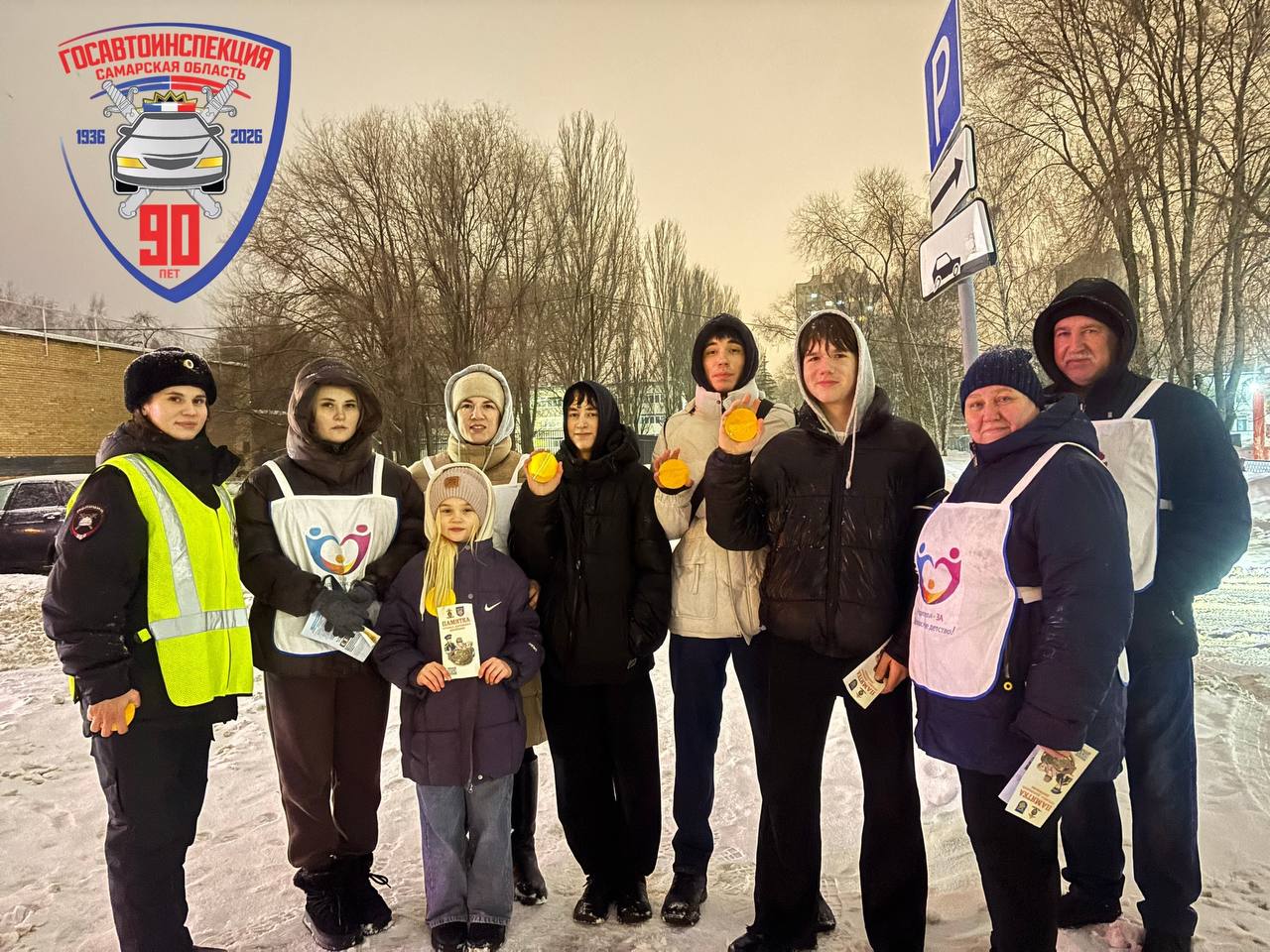 Каждому участнику вручили световозвращающие наклейки, которые помогут стать заметнее для водителей.
