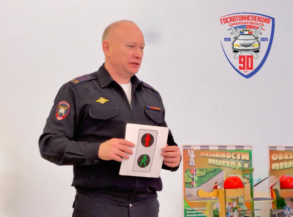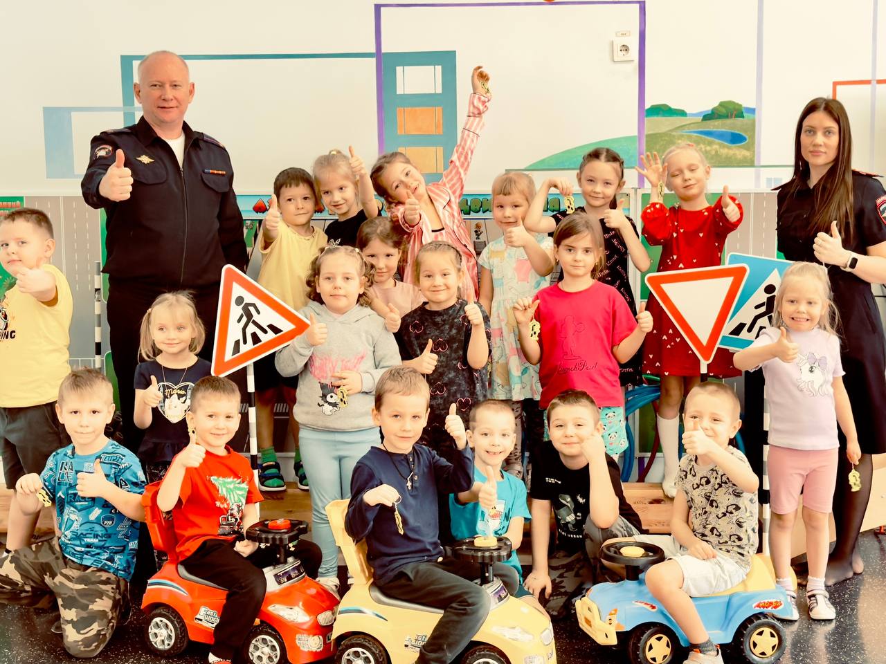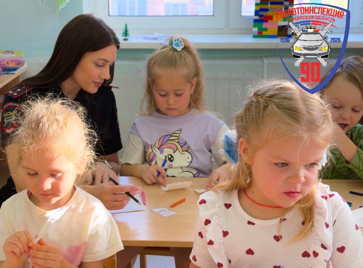 С воспитанниками встретился начальник Госавтоинспекции ОМВД России по Волжскому району подполковник полиции Дмитрий Баландов. В доступной форме детям напомнили основные правила поведения на дороге, разобрали «дорожные ловушки» и закрепили алгоритм безопасного перехода проезжей части на специализированной площадке.