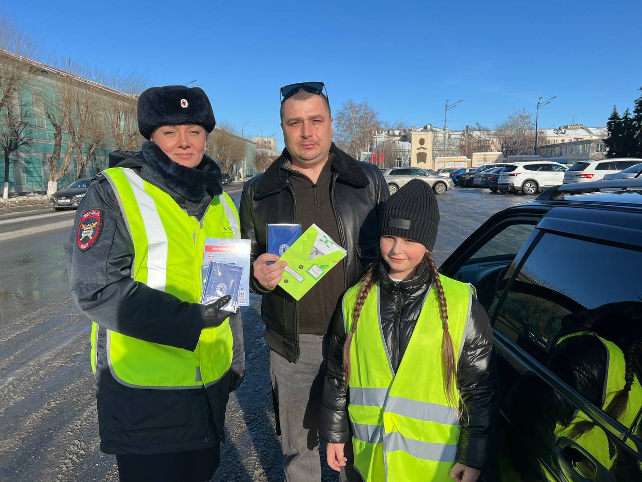 В преддверии Дня защитника Отечества в г. Сызрань на дороги вышел праздничный женский патруль Госавтоинспекции совместно с отрядом ЮИД и представителем Центра по профилактике.