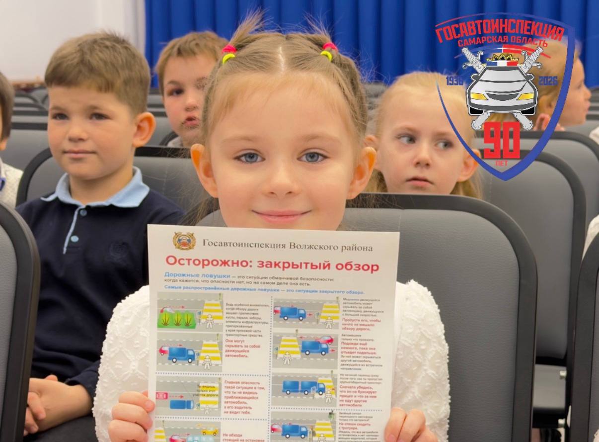 Даже на знакомой улице важно быть внимательным! На фото юная участница дорожного движения держит памятку по безопасному поведению на дороге.
