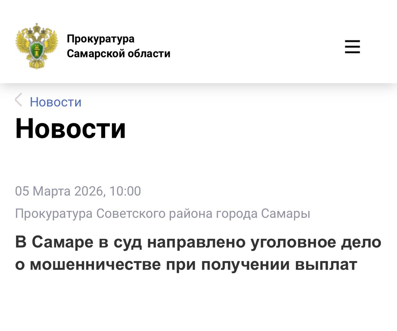 Прокуратурой Советского района г. Самары утверждено обвинительное заключение по уголовному делу в отношении 50-летней женщины. Она обвиняется по ч. 3 ст. 159.2 УК РФ (мошенничестве при получении выплат).