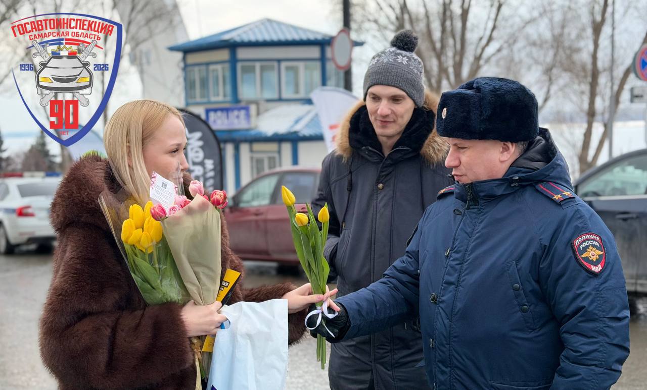 В первый день акции к поздравлениям присоединился руководитель самарской Госавтоинспекции, подполковник полиции Сергей Шепелев, который лично вручил первые весенние цветы и пожелал счастливых и безопасных поездок.