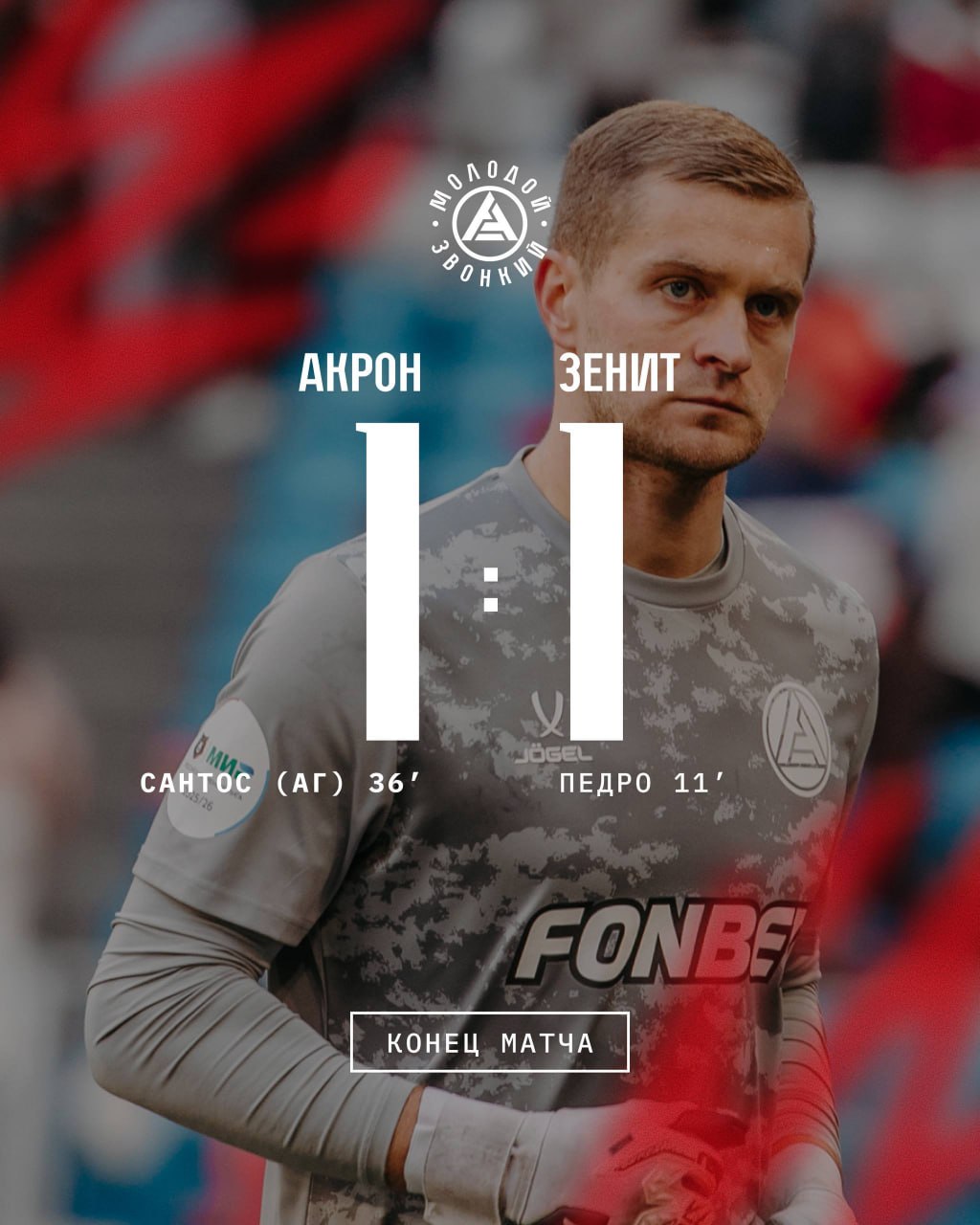 На 11 минуте счет открыли гости. Гол забил нападающий Педро. "Акрон" смог отыграться на 36 минуте. Защитник "Зенита" Дуглас Сантос срезал мяч в собственные ворота.