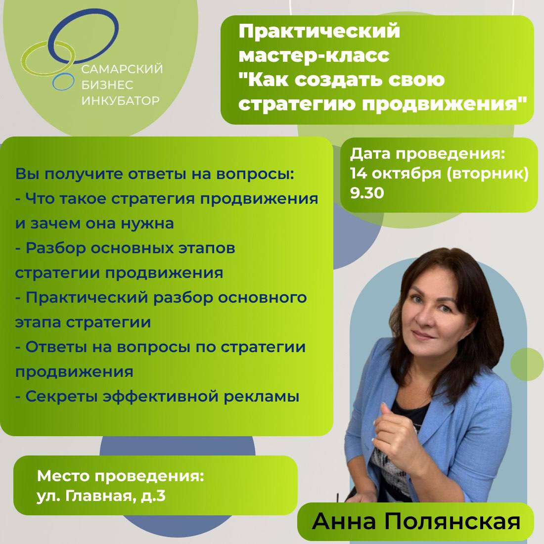 14 октября в 9:30 Самарский бизнес-инкубатор приглашает на практический мастер-класс «Как создать свою стратегию продвижения»