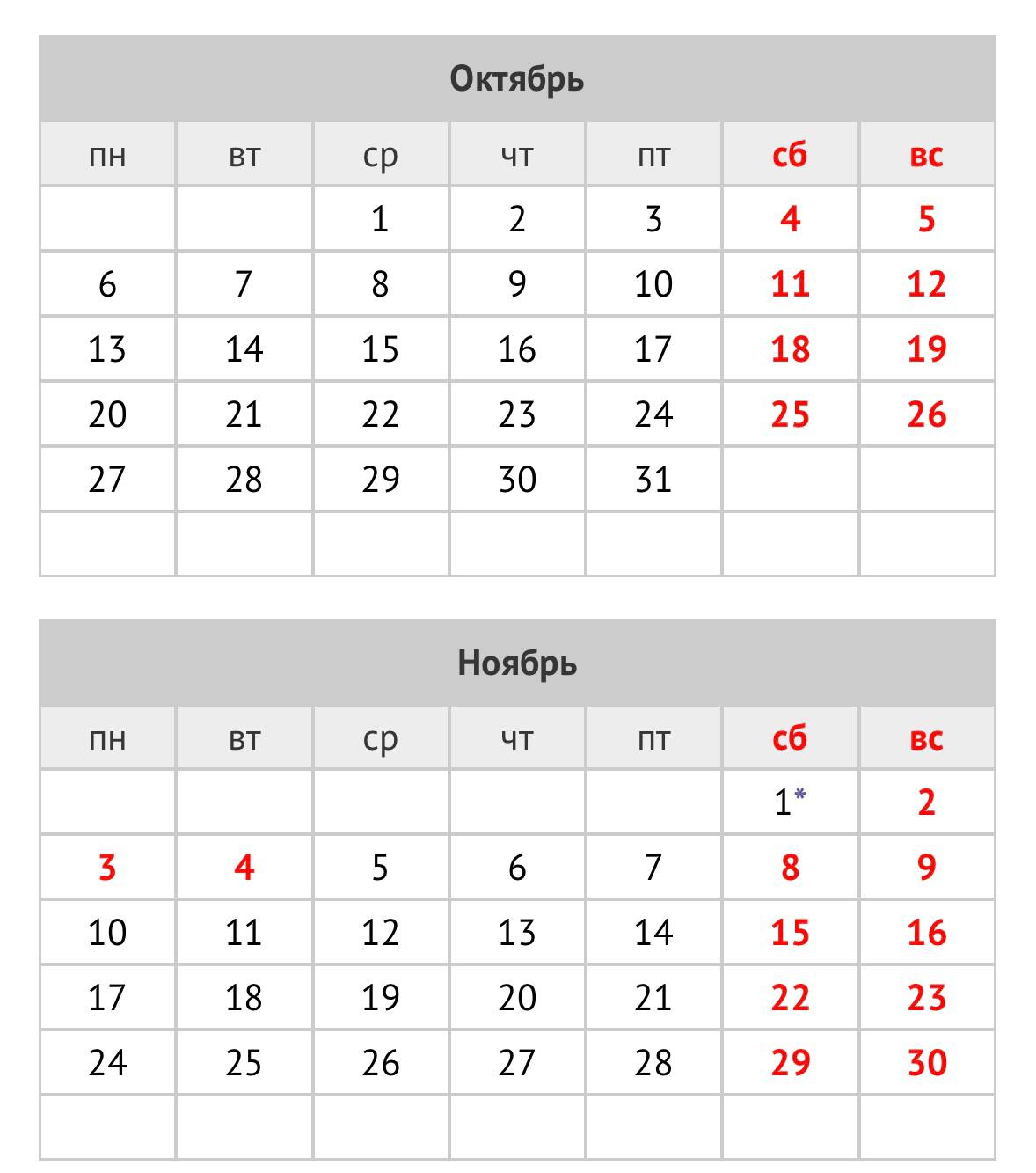 Это связано с переносом выходного дня с субботы 1 ноября на 3 ноября, понедельник.