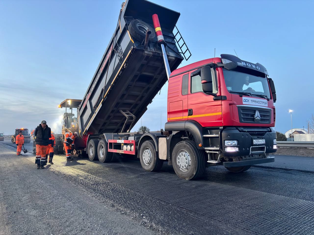 Уже выполнено фрезерование старого покрытия, уширение проезжей части и укрепление основания на двух участках длиной 11 км. Сейчас укладывают нижний слой асфальта, завершение запланировано до конца сезона при хорошей погоде.
