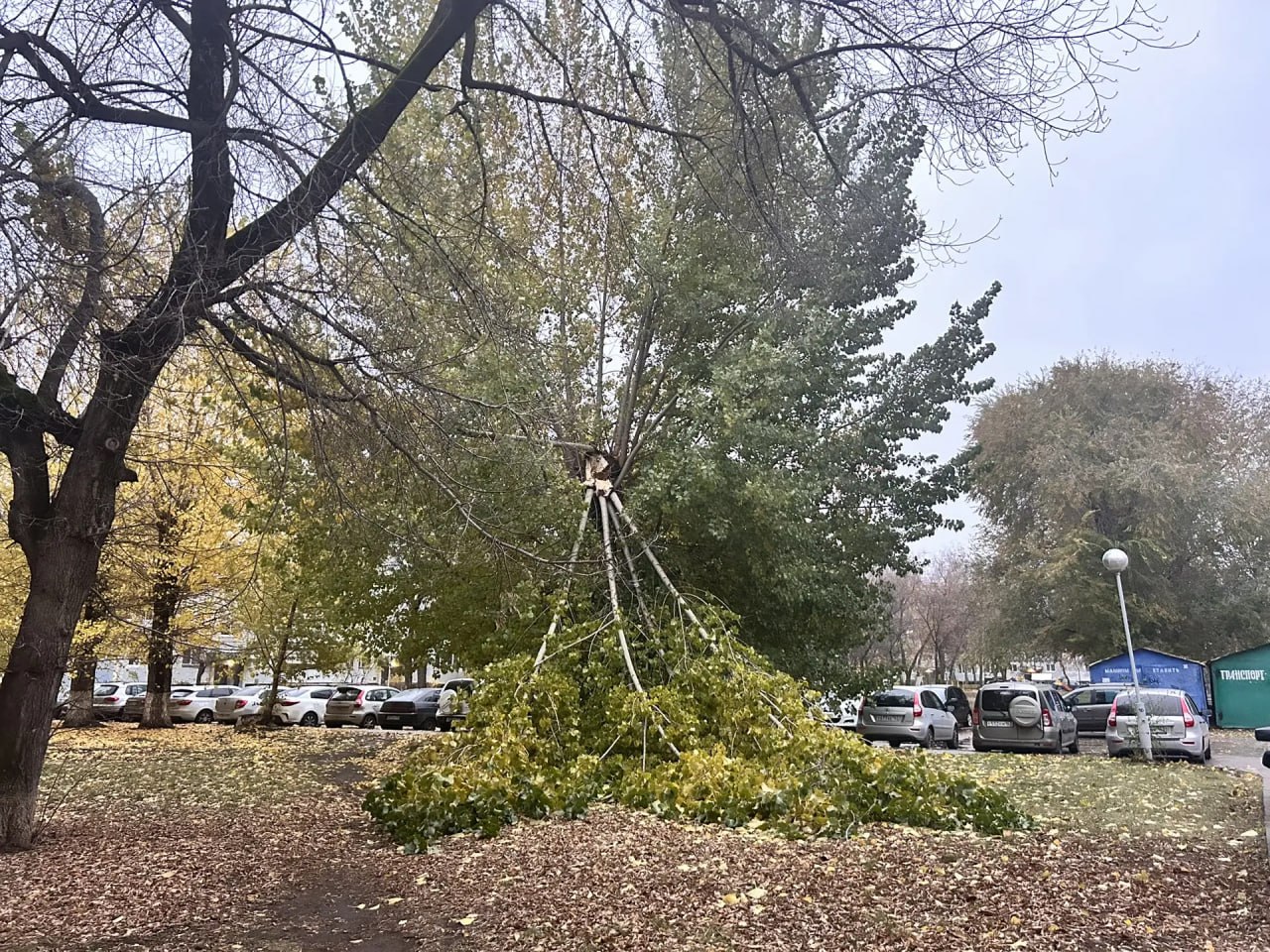 Сильнейший порыв ветра сломал дерево в 5 квартале.