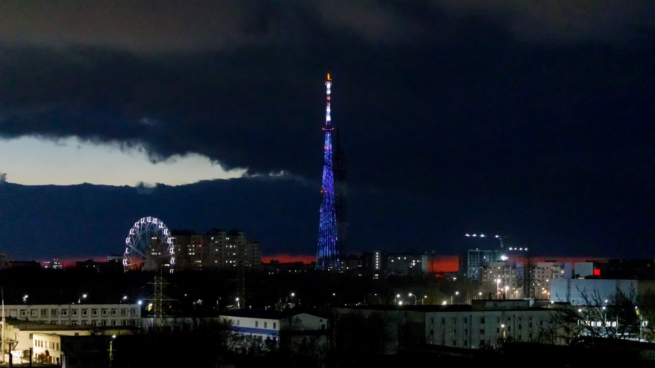 Телебашня сегодня выглядит особенно впечатляюще. Яркие огни отражаются в вечернем небе, завершая этот день.