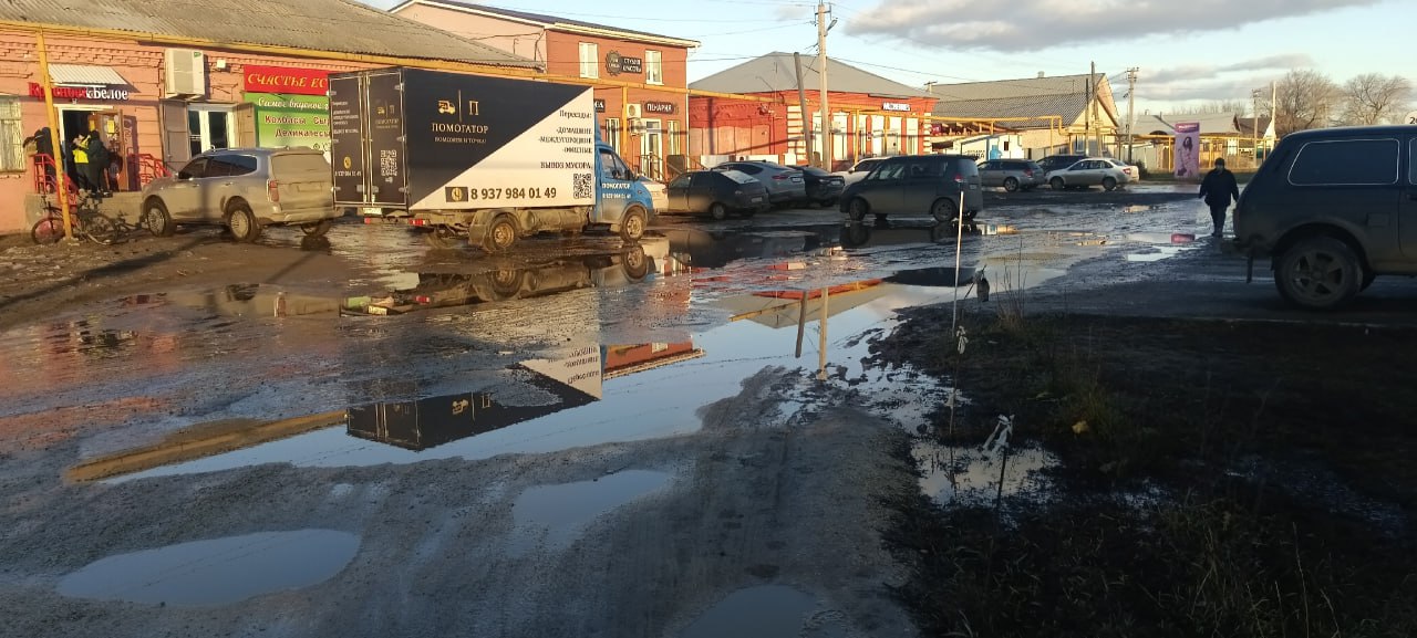 «Тротуаров нет. По адресу улица Мира, 59 сосредоточены основные магазины села, пункты выдачи, детские развивающие клубы. Подъезда к этому зданию нет, а подхода и тем более. Приличная парковка есть у магазина, но на нее тоже сначала попасть надо, нырнув перед этим в лужи», — сообщают местные жители.