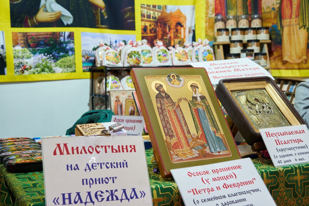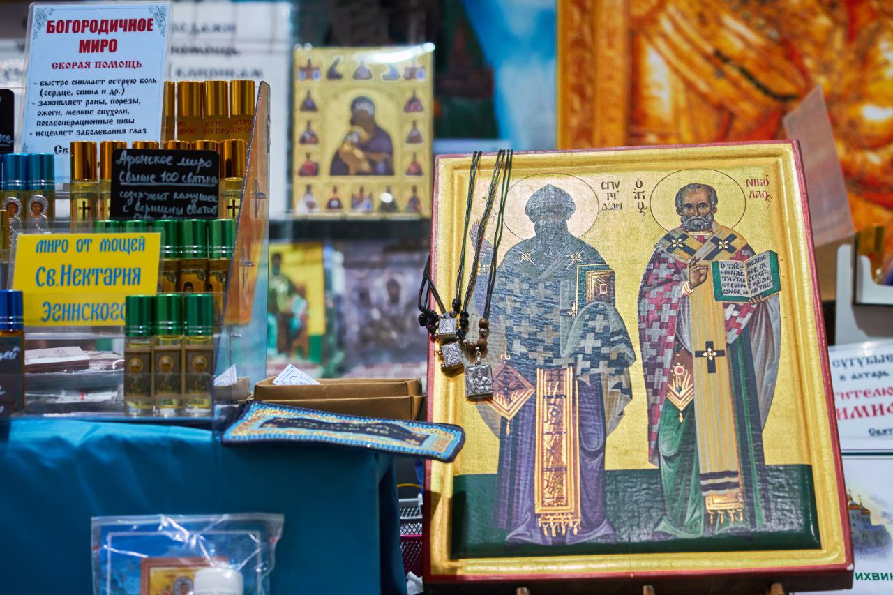 Гости могут поклониться святыням, обратиться с молитвой, поддержать восстановление храмов и монастырей, а также приобрести полезные вещи и подарки. В экспозиции — православные книги, иконы, церковная утварь, мед, специи, лекарственные травы, авторская одежда из натуральных тканей и редкие работы мастеров.