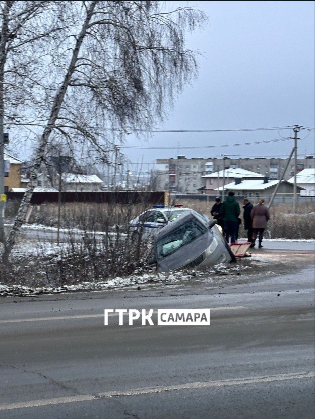 Столкнулись автомобили марки Lada и Kia. В результате аварии иномарка съехал в кювет. На месте работает полиция.: Саша СеврюгинаГТРК Самара MAX lВК lОК lСАЙТ