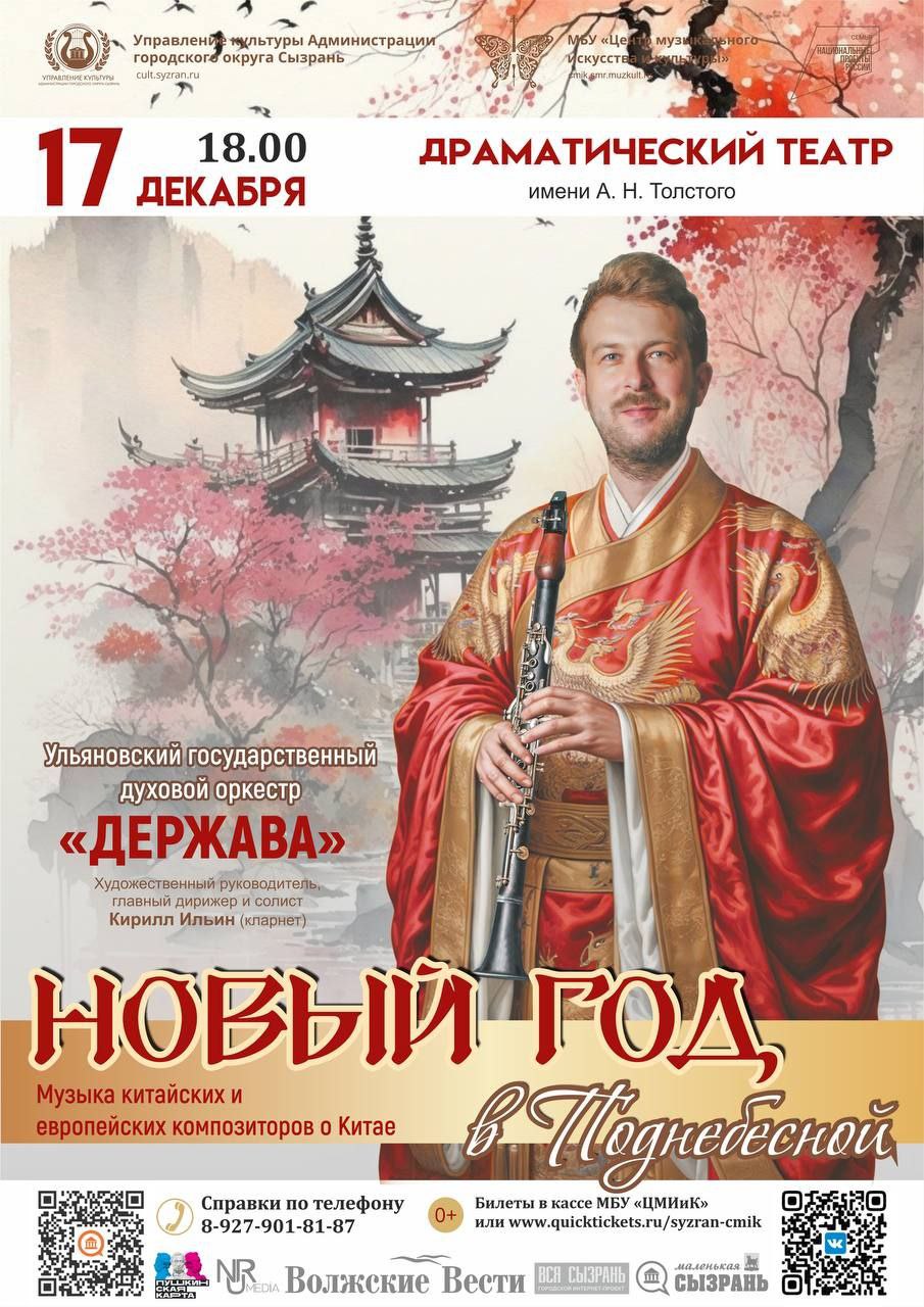 Ульяновский государственный духовой оркестр «Держава» под руководством Кирилла Ильина приглашает на концертную программу «Новый год в Поднебесной»
