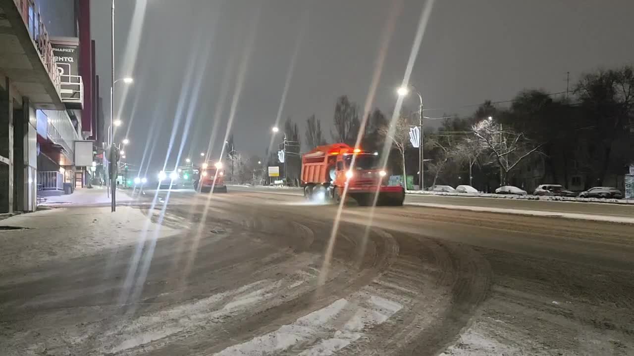 Коммунальные службы города вышли на расчистку проезжей части и тротуаров.