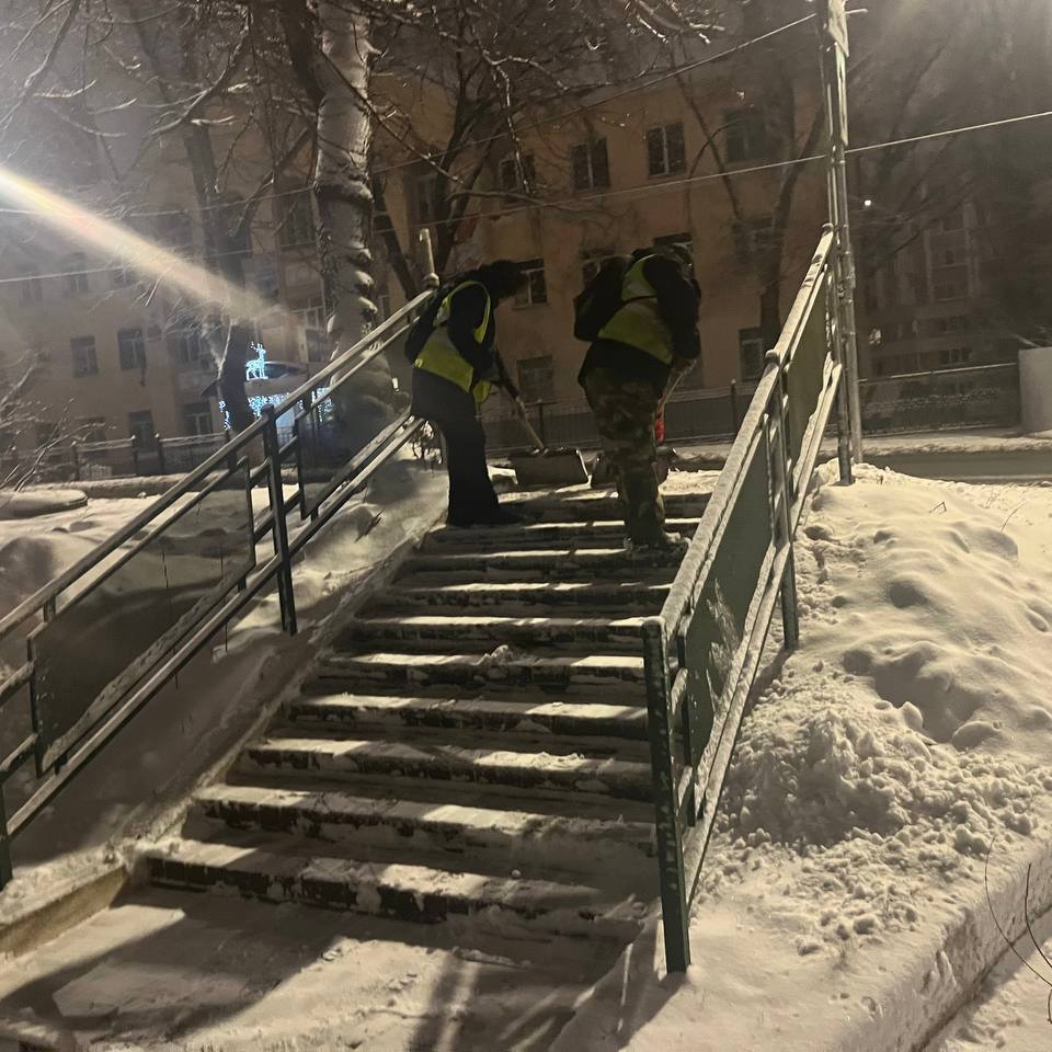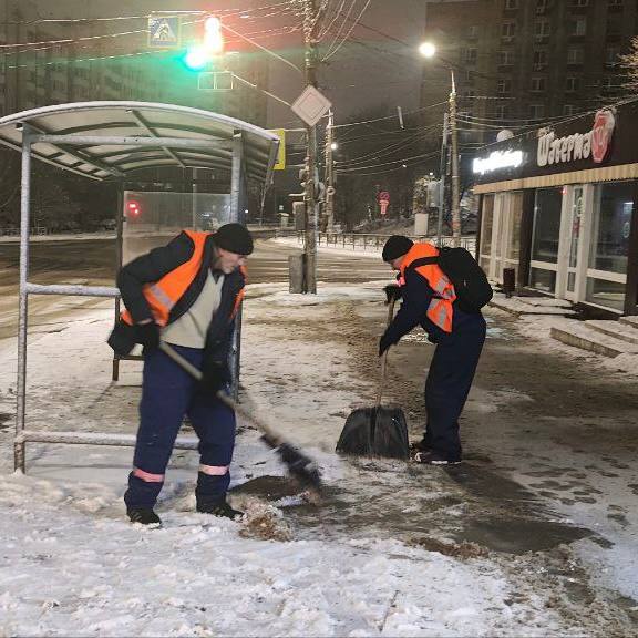 Снежные накопления убирают и возле обочин. Особое внимание при уборке уделяют остановочным павильонам и лестницам.