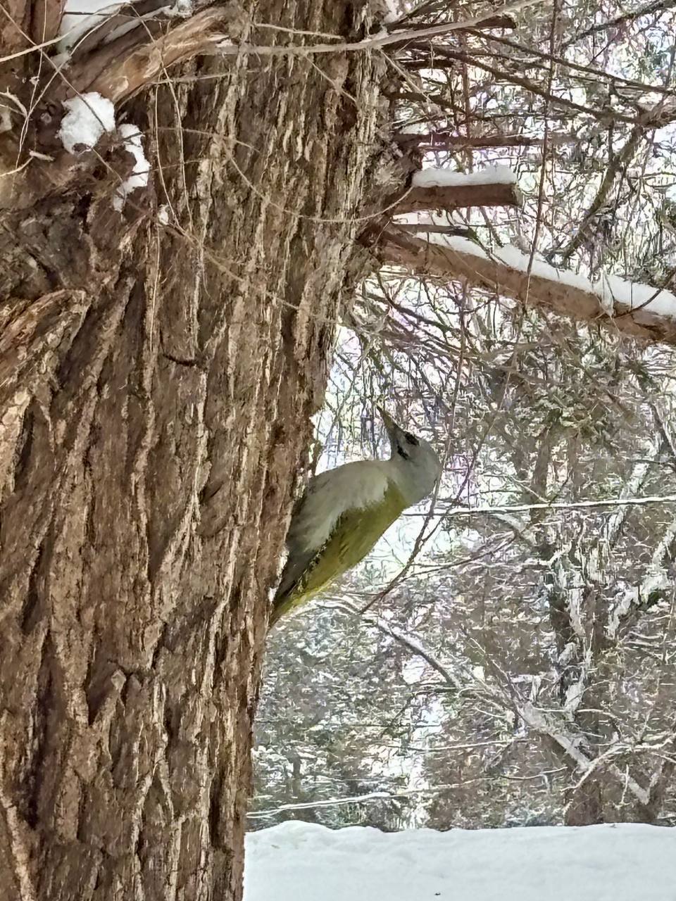 Вот такой пернатый обитатель замечен в лесном массиве Комсомольского района. Зеленый дятел — это очень редкий для наших мест вид, занесенный в Красную книгу Самарской области.