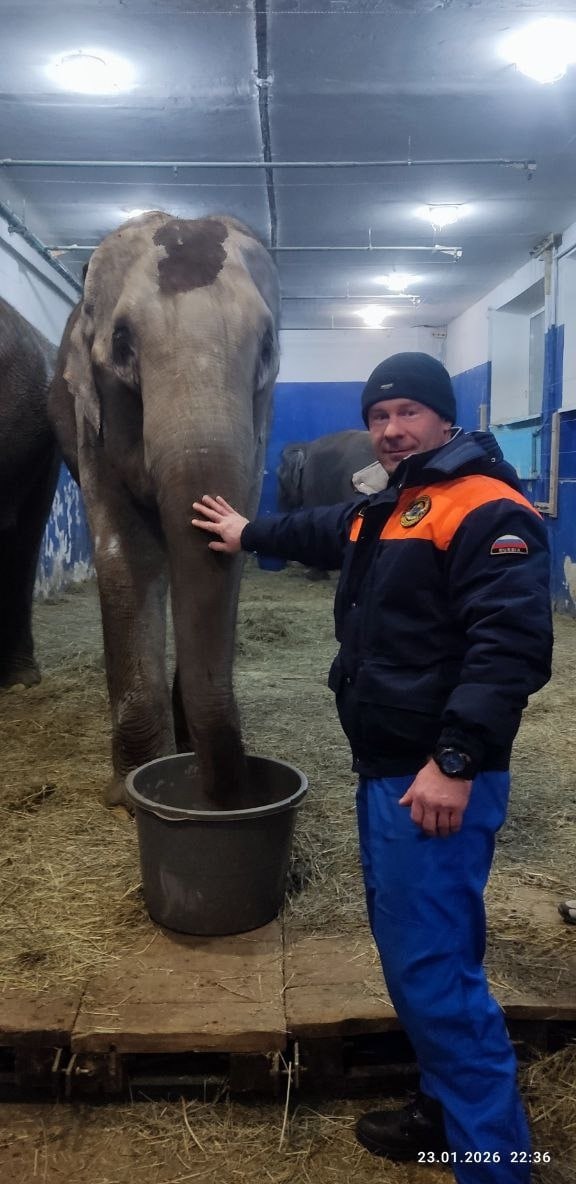 «В Самаре рядом с цирком есть горки, где катаются дети. И вчера одна из молодых слоних услышала звук петарды, испугалась. Когда мы переводим их из транспорта в здание, у нас есть попоны, валенки для слонов, она испугалась, сорвала с себя всё и побежала. Бывает, что собака пугается и убегает от хозяина, а здесь — слон, слон немножко побыстрее бегает».