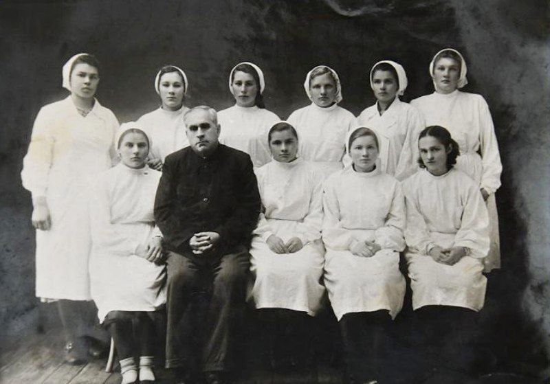 4. Гегам Бадалянц и студентки фельдшерско-акушерской школы, 1955 г.