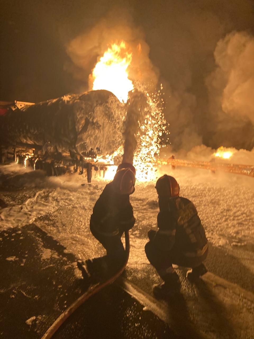 По информации пожарно-спасателей, несмотря на масштаб повреждений техники и сильный пожар, в аварии никто не пострадал.
