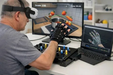В Самарском государственном медицинском университете Минздрава России (СамГМУ) разработали тренажер для эрготерапии и восстановления мелкой моторики рук ReviHand. [Тренажер] представляет собой аппаратно-программный комплекс (АПК) для медицинской и социально-бытовой реабилитации пациентов методами эрготерапии на основе виртуальной реальности с использованием нейронных сетей и тактильной обратной связи,