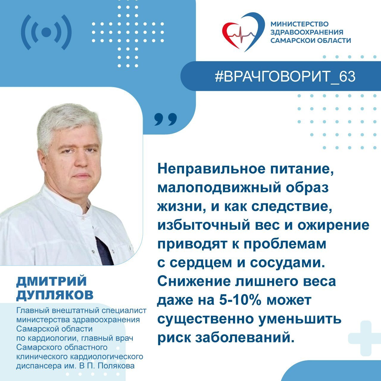Главный внештатный специалист министерства здравоохранения Самарской области по кардиологии, главный врач Самарского областного клинического кардиологического диспансера им. В П. Полякова Дмитрий Дупляков: