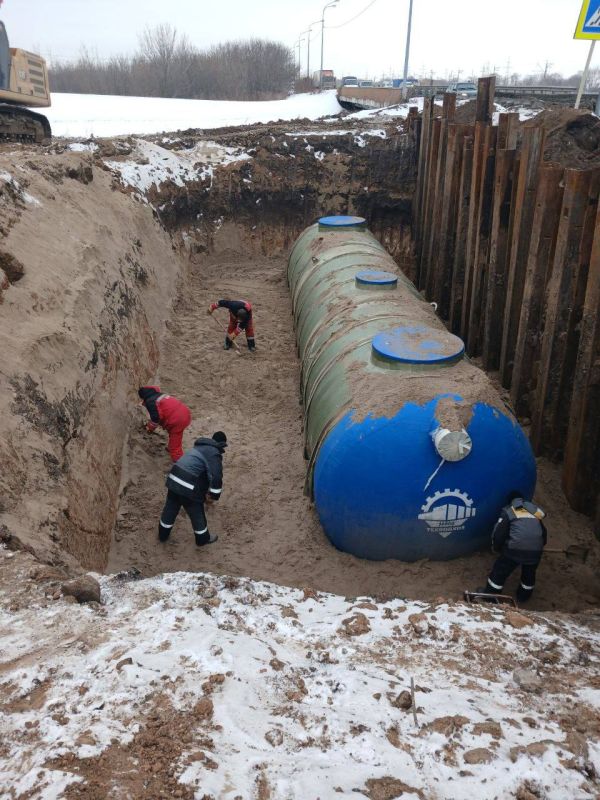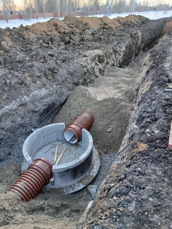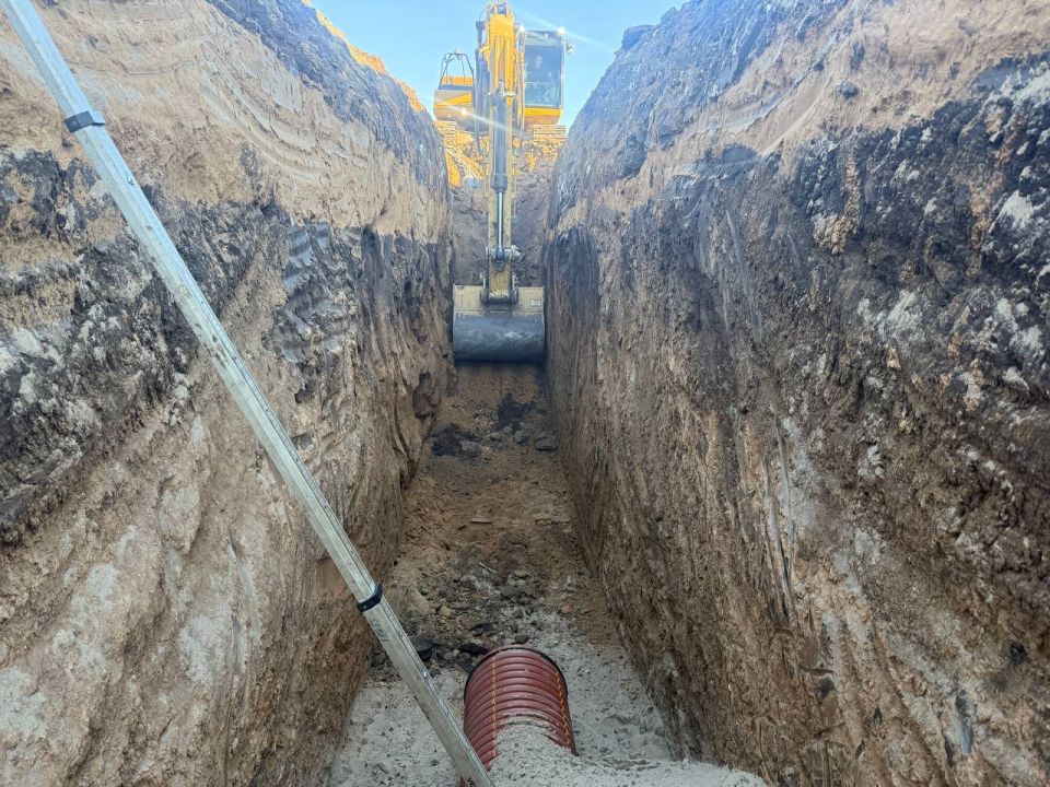 В настоящий момент подрядчик сосредоточен на устройстве ливневой канализации с очистными сооружениями и переустройстве электросетей.