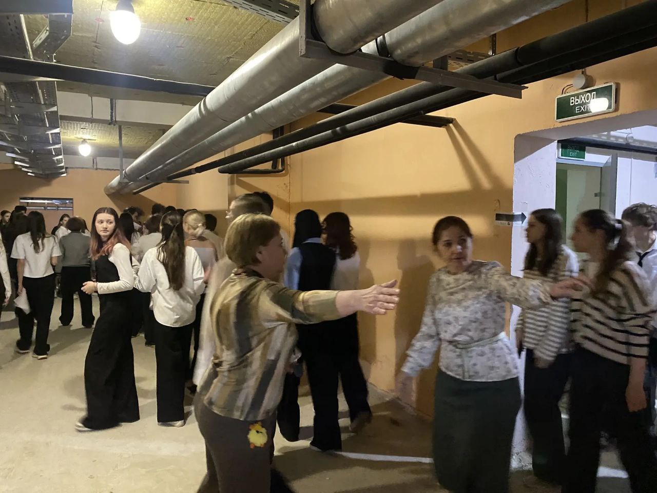 1,5 тысячи учеников оперативно эвакуировались в подвальное укрытие и помещения без окон в здании школы. Педагогический состав и дети действовали по отработанной схеме и без паники и суматохи выполнили необходимые действия для обеспечения безопасности.