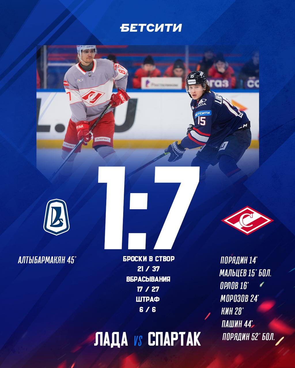 Хоккейная «Лада» потерпела поражение в игре со «Спартаком».