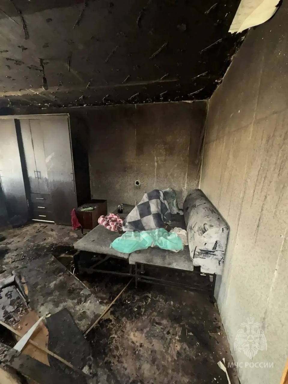 Прибывшие пожарно-спасательные подразделения обнаружили горящие домашние вещи в квартире на 2 этаже. В 00:44 огнеборцы полностью ликвидировали пожар на площади 40 квадратных метров.