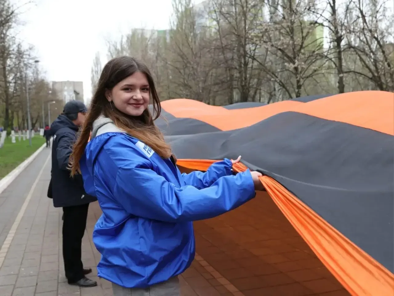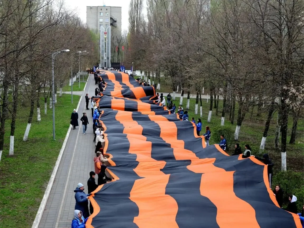 Парк Победы украсила 300-метровая Георгиевская лента