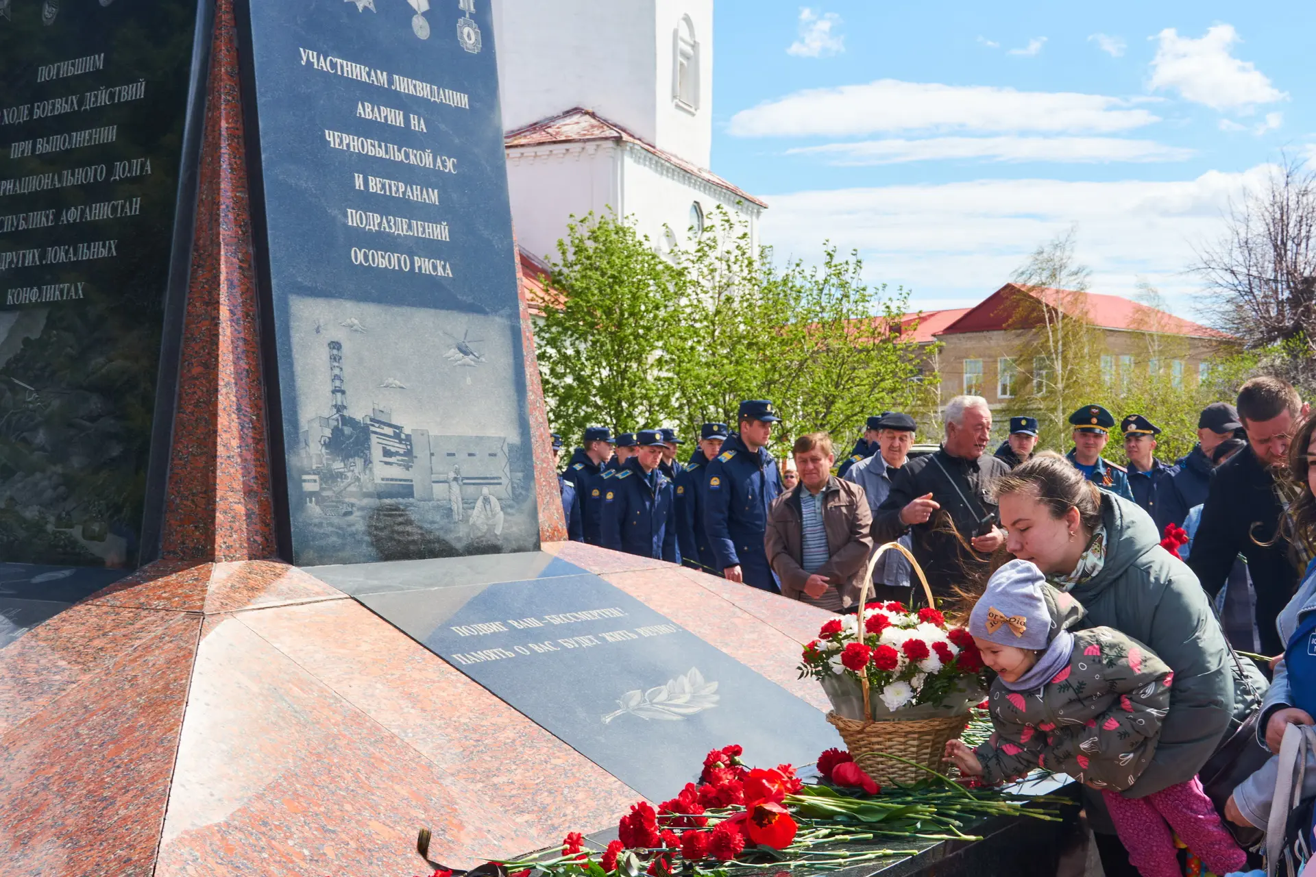 У Спасской башни Сызранского кремля собрались ликвидаторы аварии и их семьи, представители администрации, депутат Самарской Губернской Думы Сергей Гринько, сотрудники МЧС, офицеры и курсанты вертолётного училища, воспитанники военно-патриотических клубов.