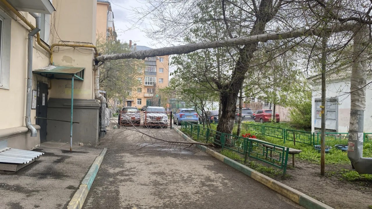 Стихия буйствует в разных районах города — деревья не выдерживают и начинают ломаться.