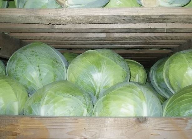 - На полках или в ящиках: кочаны укладывают кочерыгой вверх в один слой, что облегчает осмотр и удаление повреждённых.