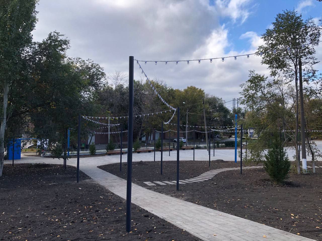 В парке завершают укладку брусчатки, обшивают деревом площадку для йоги, монтируют видеонаблюдение, делают коммуникации для фонтана.