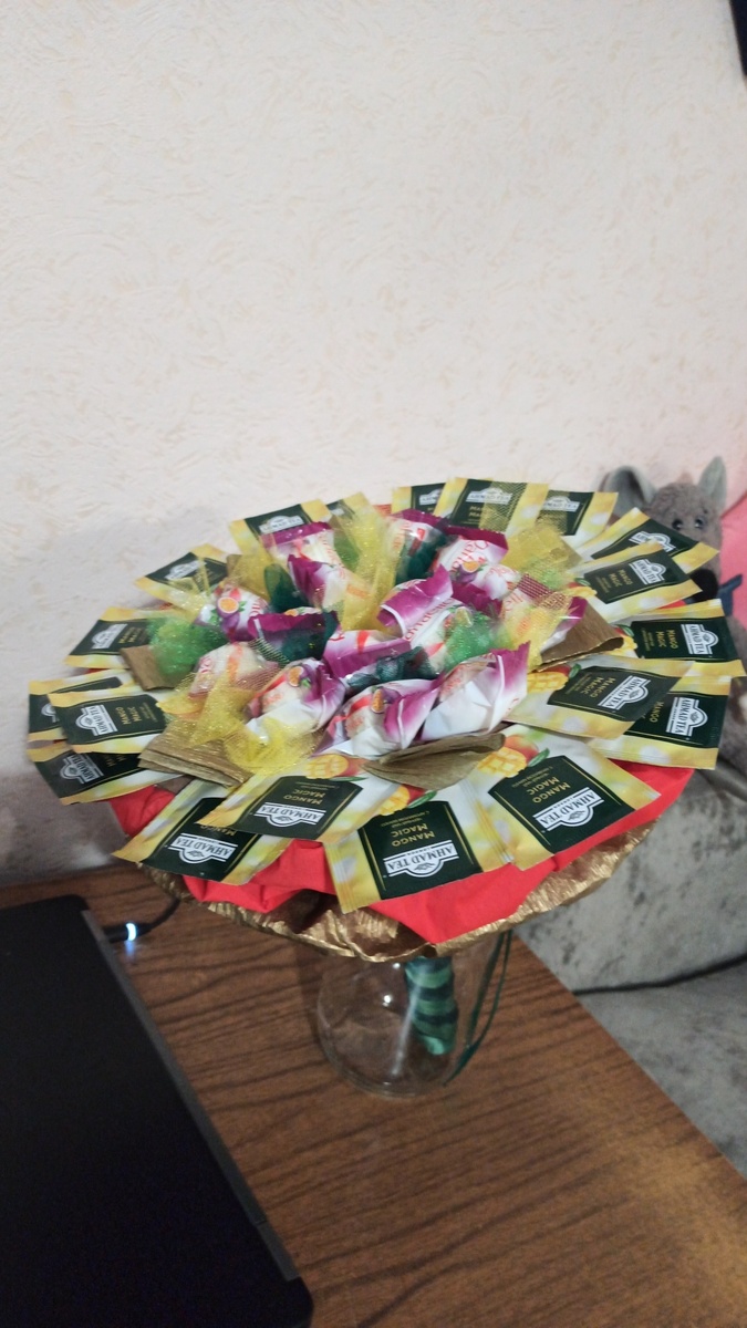 Создание букета из конфет и чая — увлекательный процесс, который требует не только креативности, но и немного терпения. Для работы понадобятся: