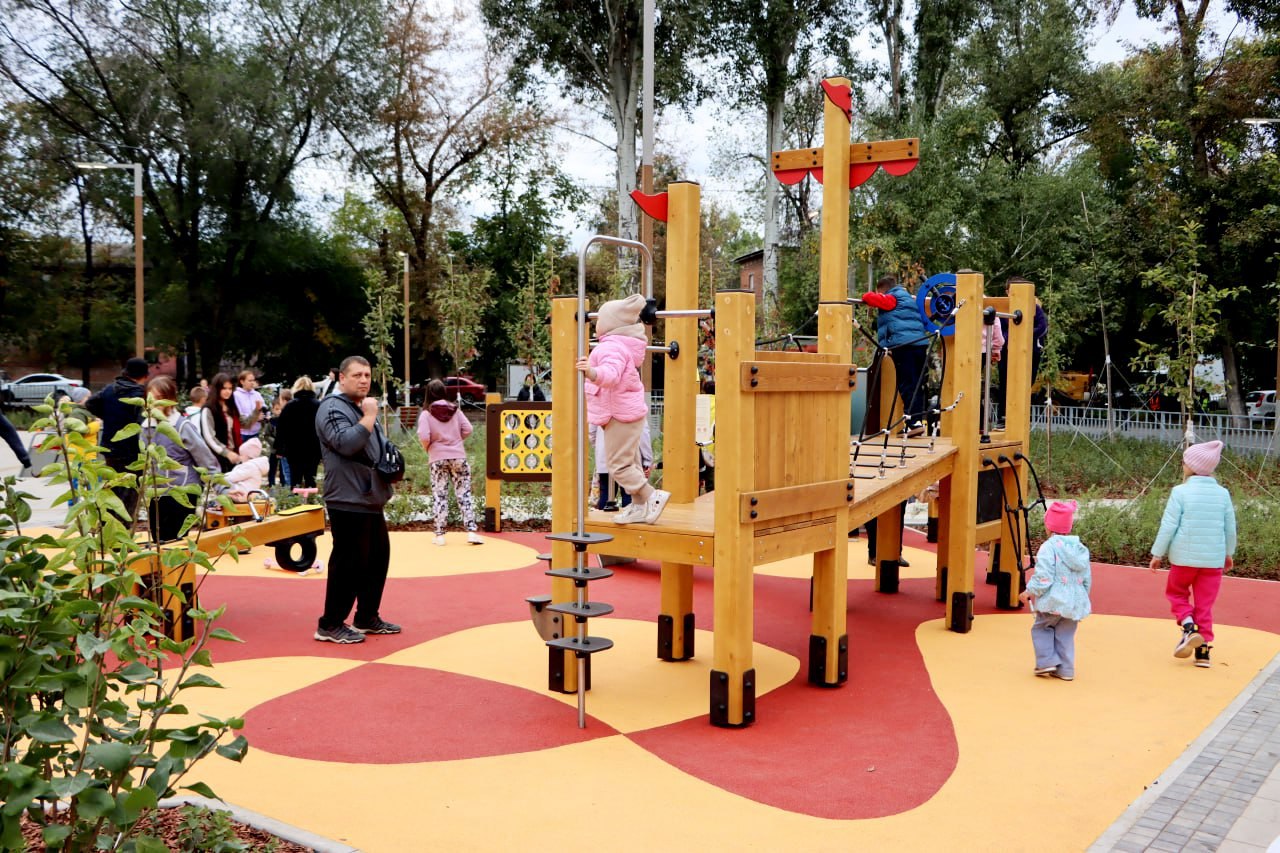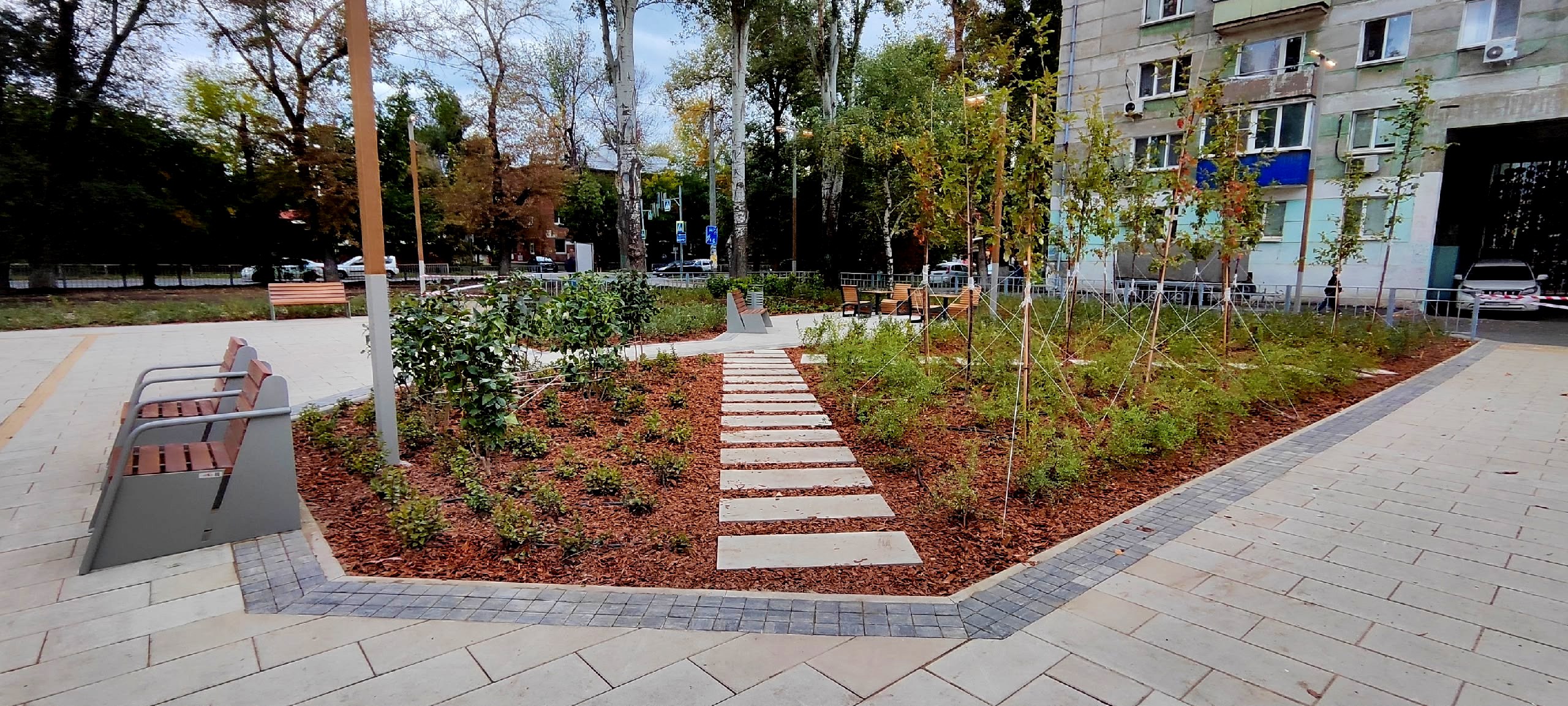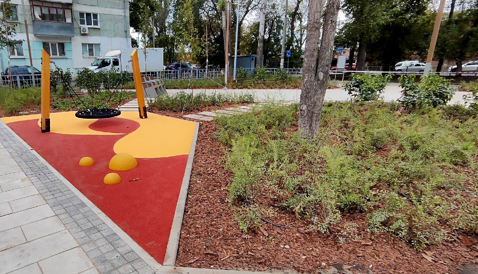 Участие жителей, конечно же, принесло свои плоды. Сейчас сквер невероятно преобразился и радует как юное поколение, так и пожилых людей. На территории обустроили спортивную и две детских площадки, установили малые архитектурные формы и уличную мебель, высадили более 1500 растений. Главным украшением пространства стал «сухой» световой фонтан.